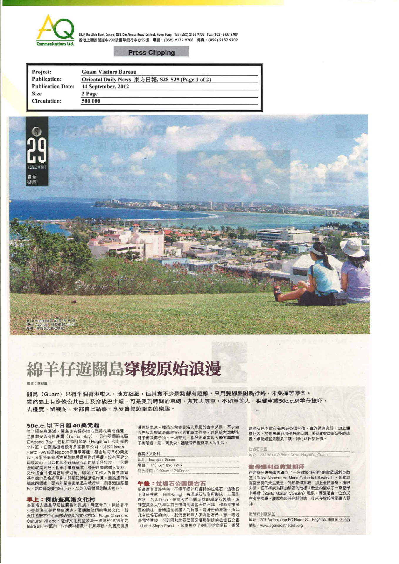 With diverse networks and experiences, AQ is capable of offering substantial services to clients. AQ is responsible for Sponsors’ co-ordination for Ms. Linda Chung’s album shooting at Guam.