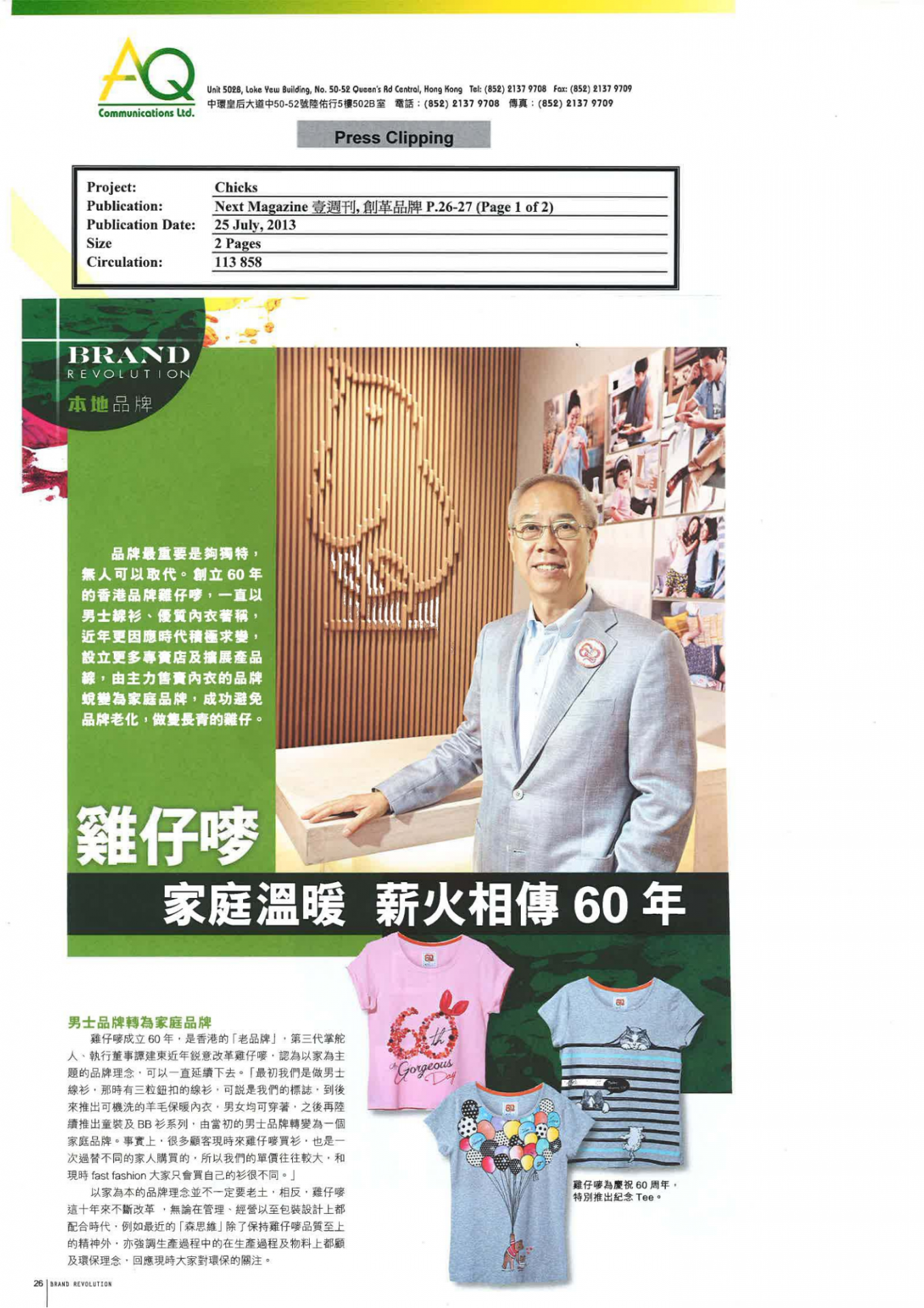 With diverse networks and experiences, AQ is capable of offering substantial services to clients. In this project, AQ is responsible for managing media relations and correlated arrangements, including press materials write-up and translation, media pitching, arrange one-on-one interviews and coverage follow-up with media report.