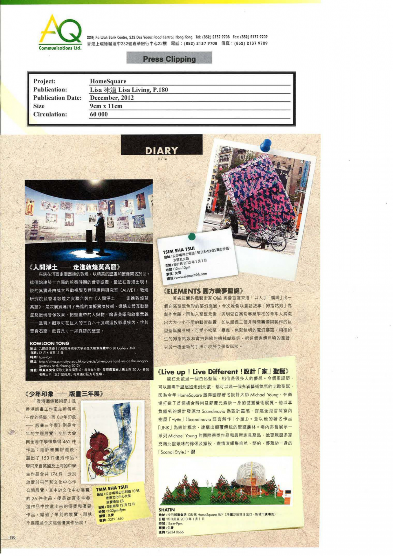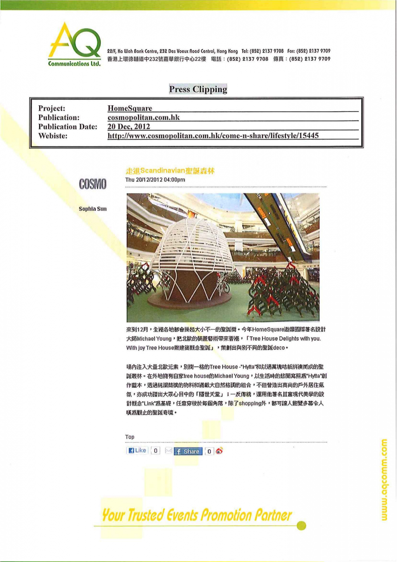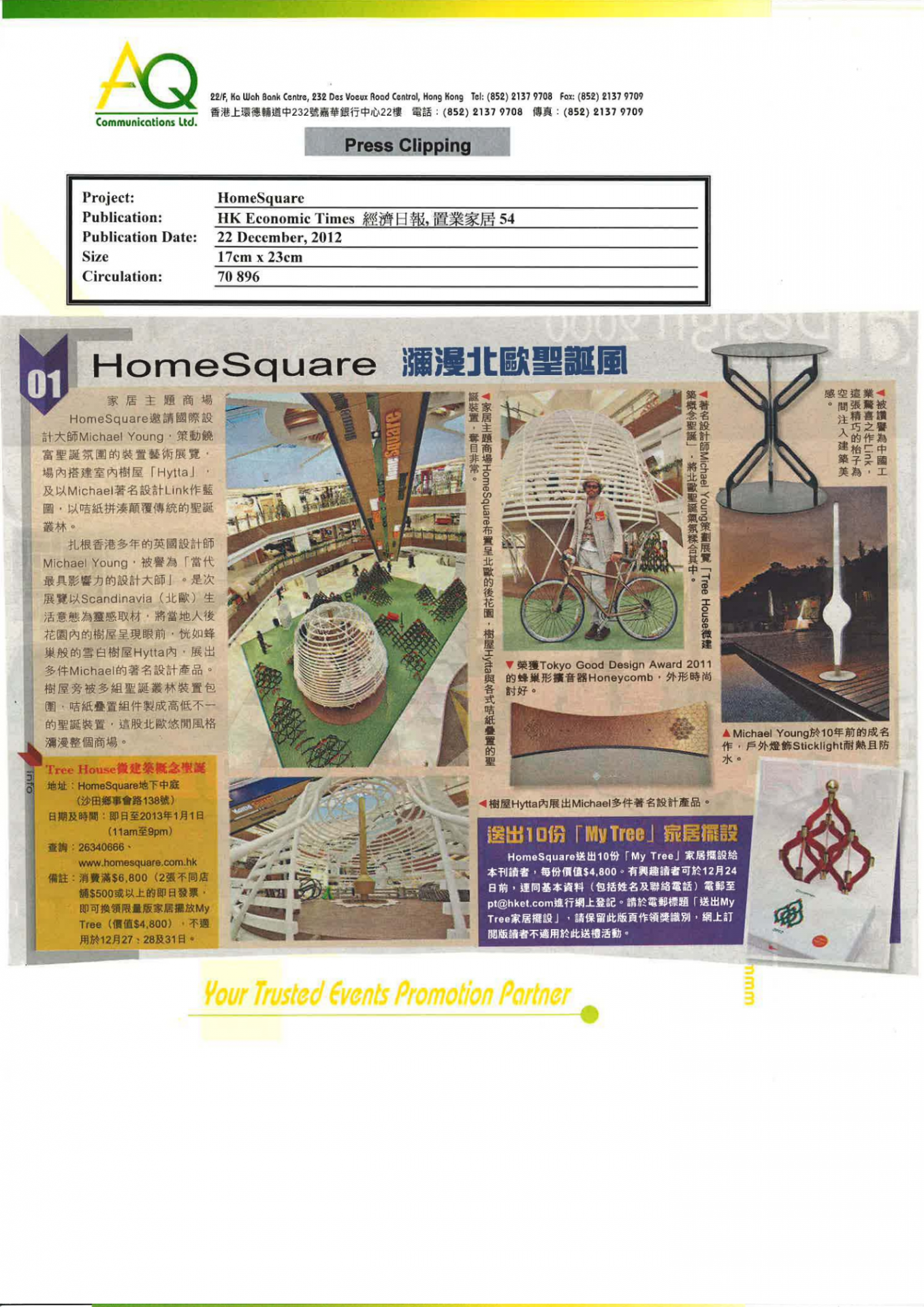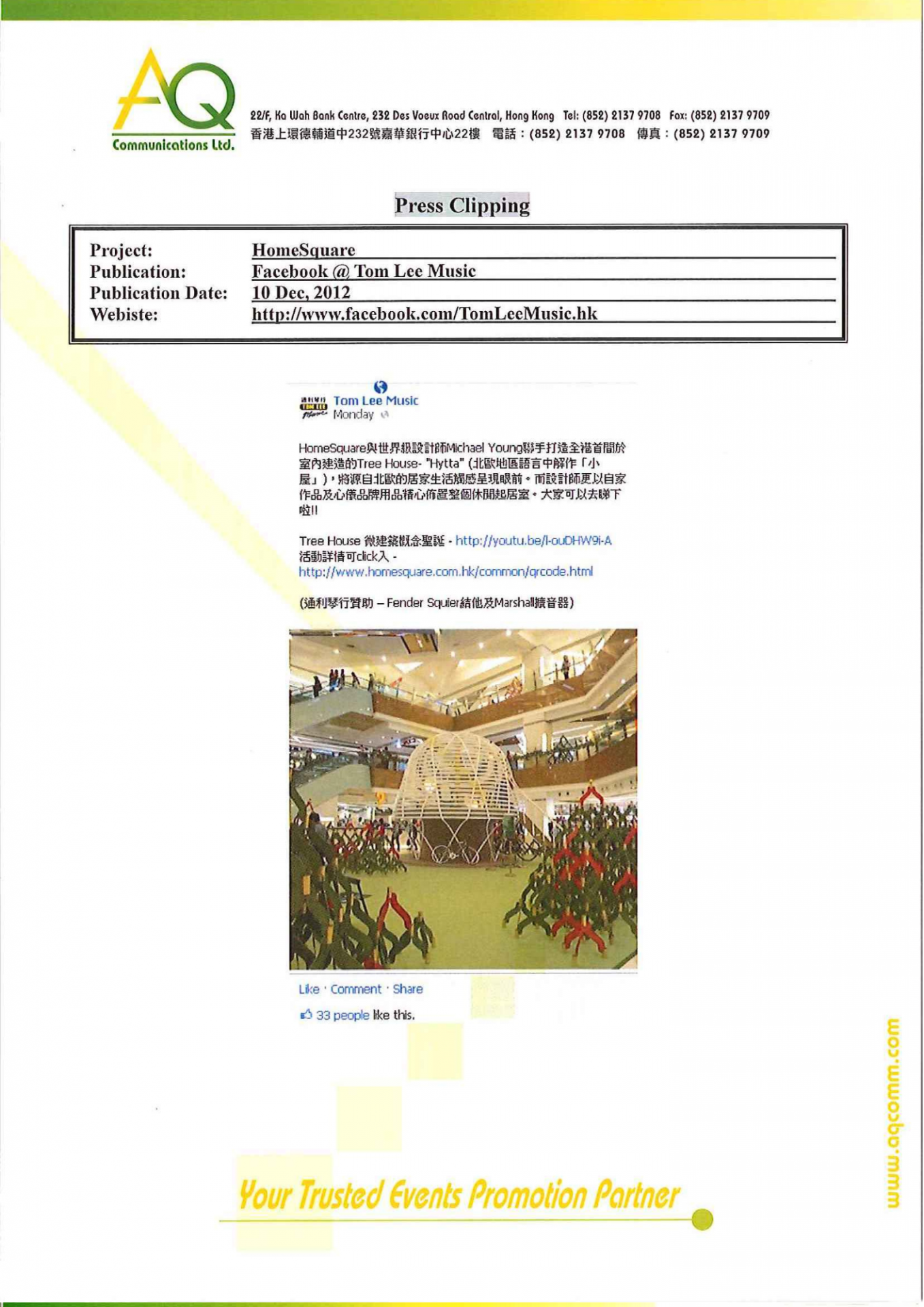 With diverse networks and experiences, AQ is responsible for blogger laison and video shoting for HomeSquare’s Christmas promotion