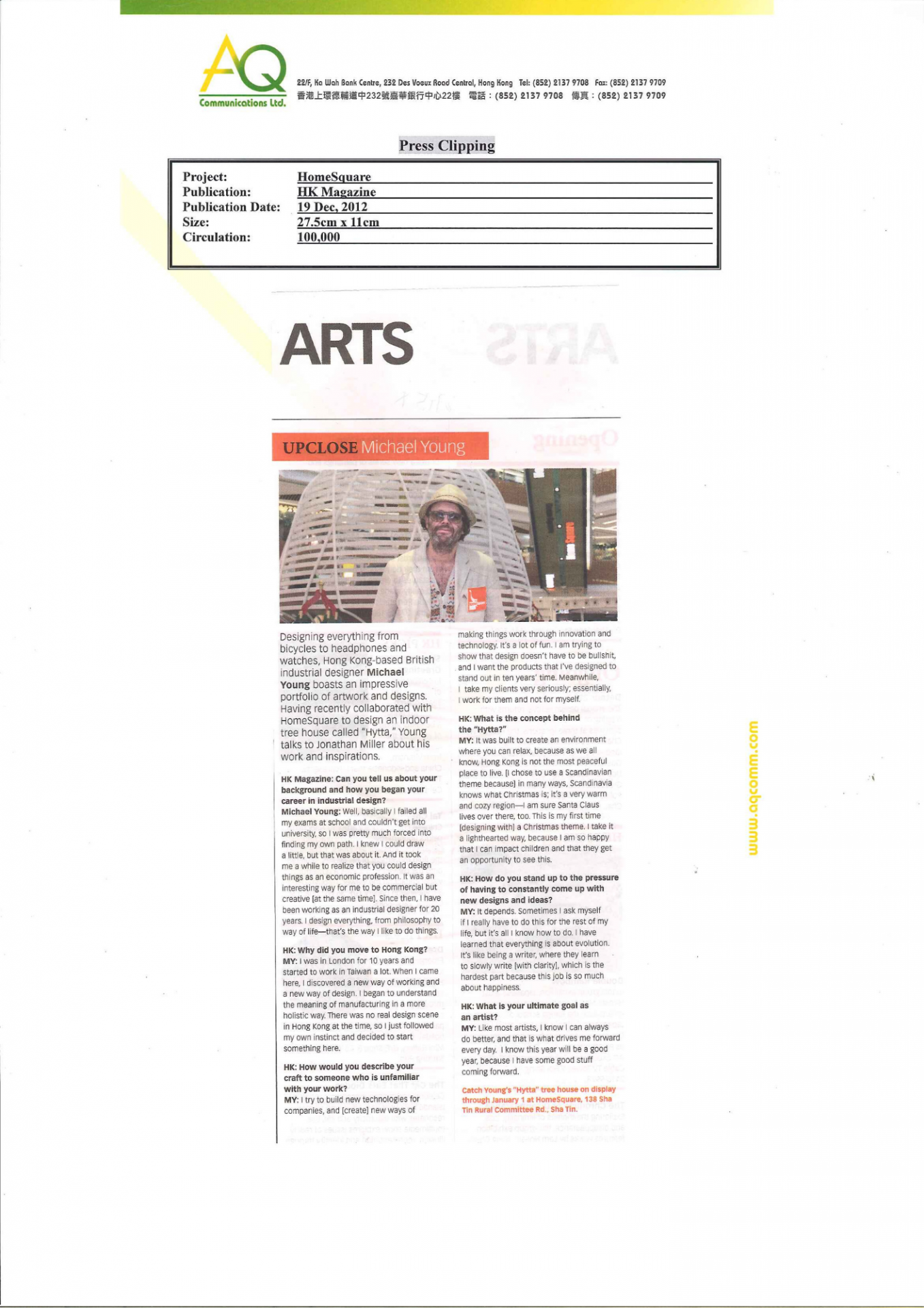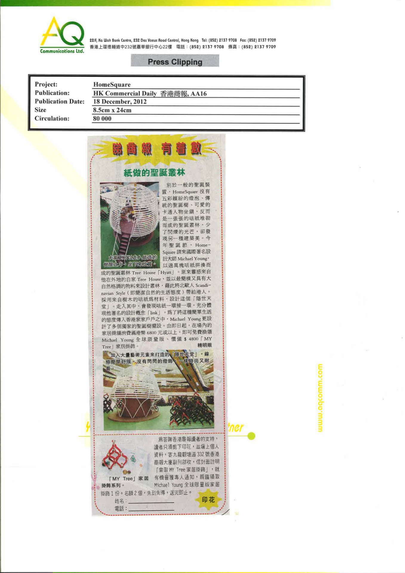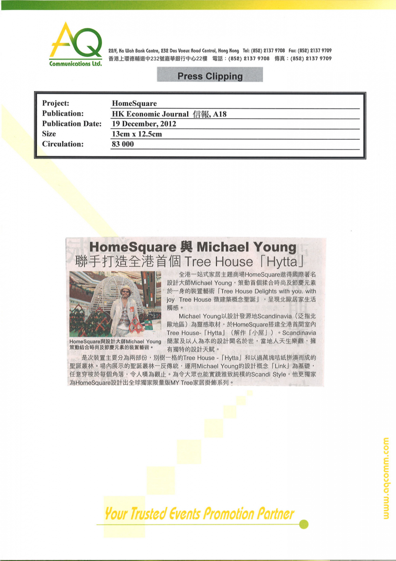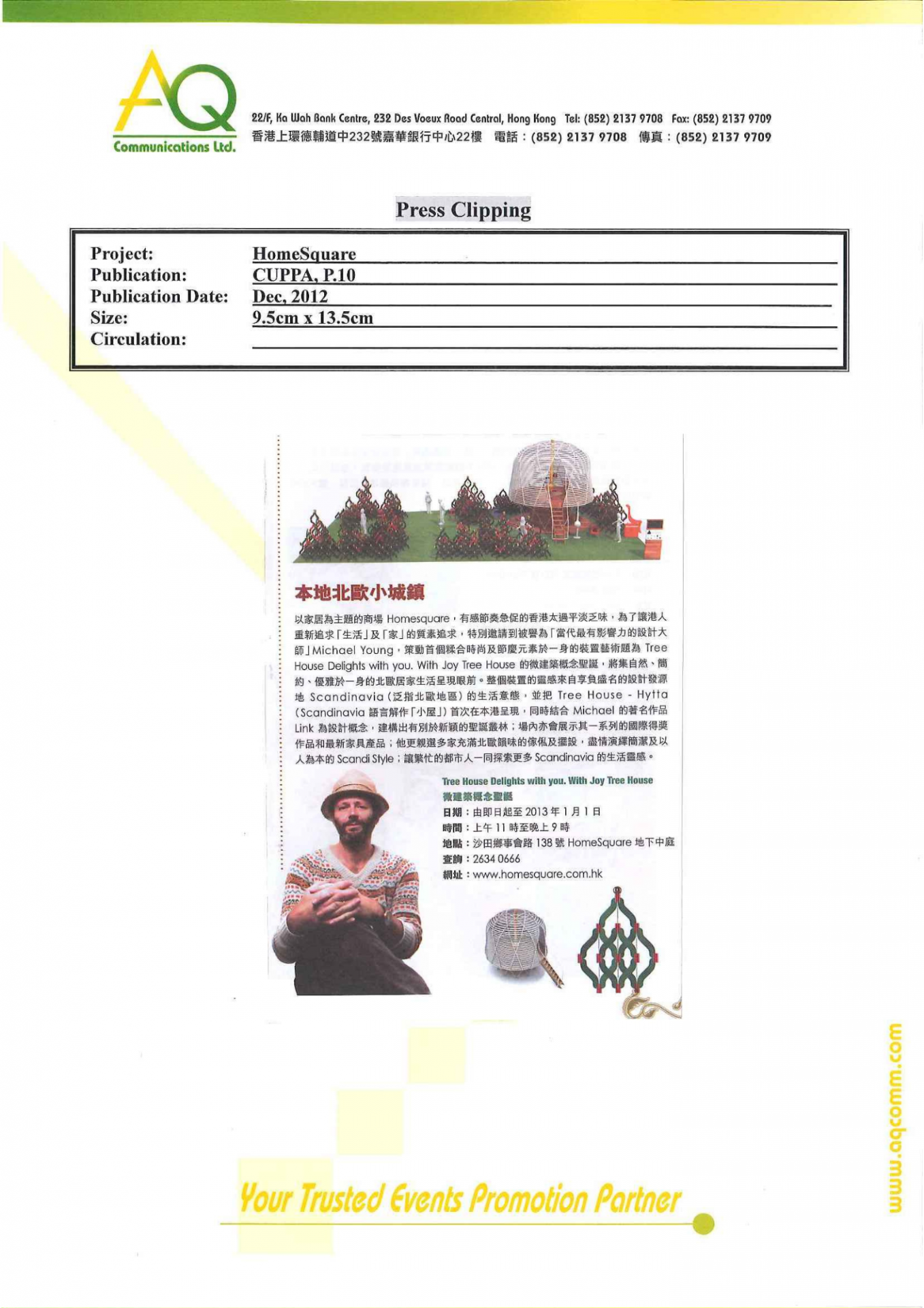 With diverse networks and experiences, AQ is responsible for blogger laison and video shoting for HomeSquare’s Christmas promotion