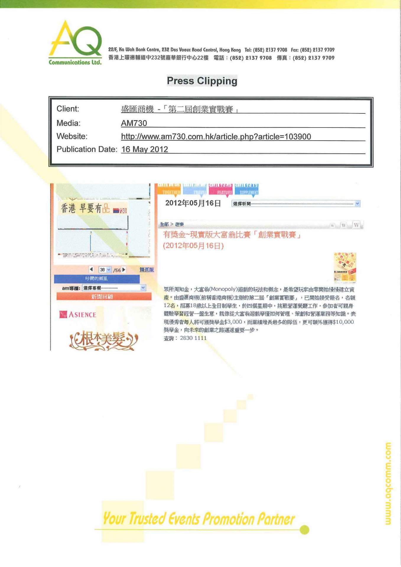 Dear Amy & Dorcus, On behalf of the Executive Committee of the Hong Kong Advertisers Association, I would like to express our sincerest gratitude to AQ’s support in co-organizing the Advertising Spending Projections with us. It’s been a great pleasure working with you and your team and we appreciate much on your professional input. …