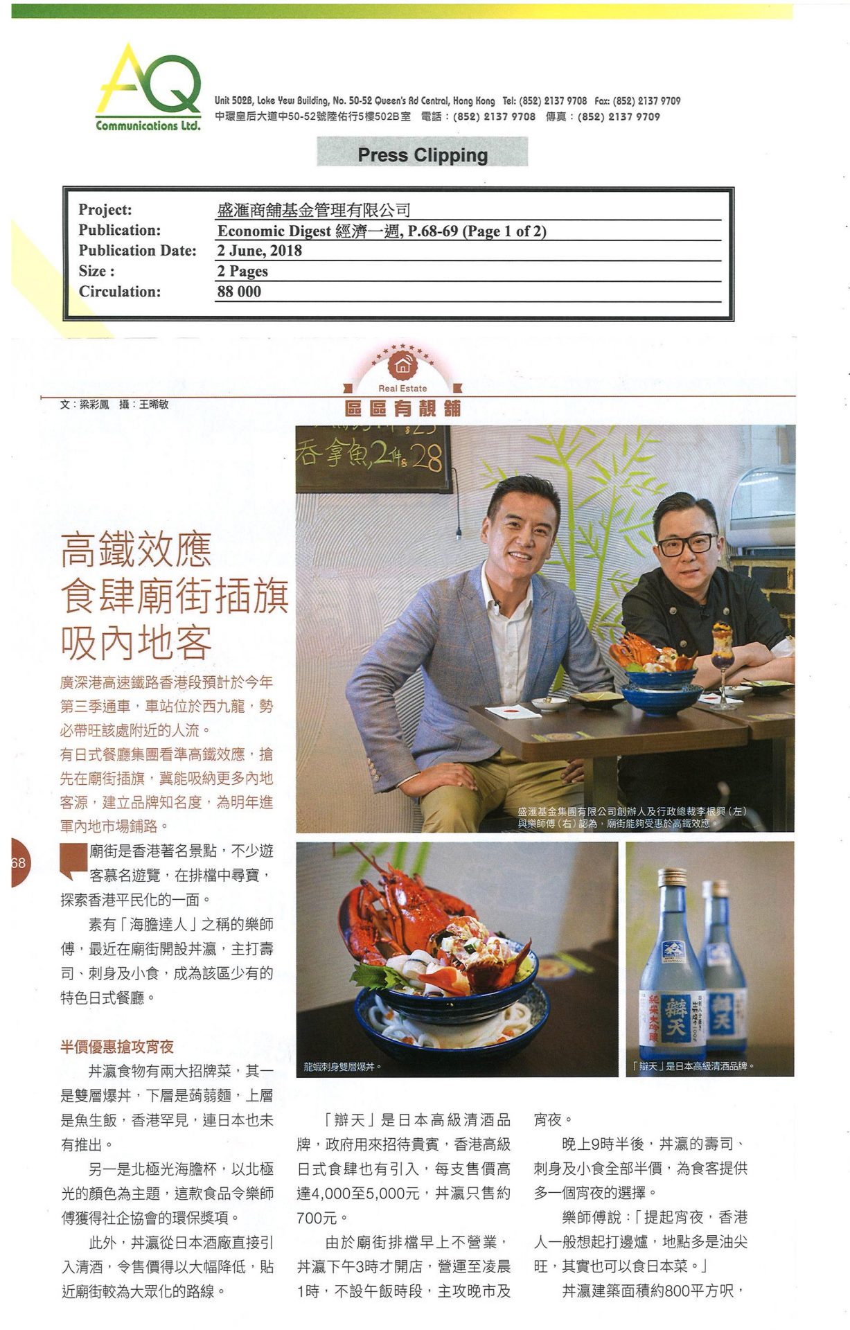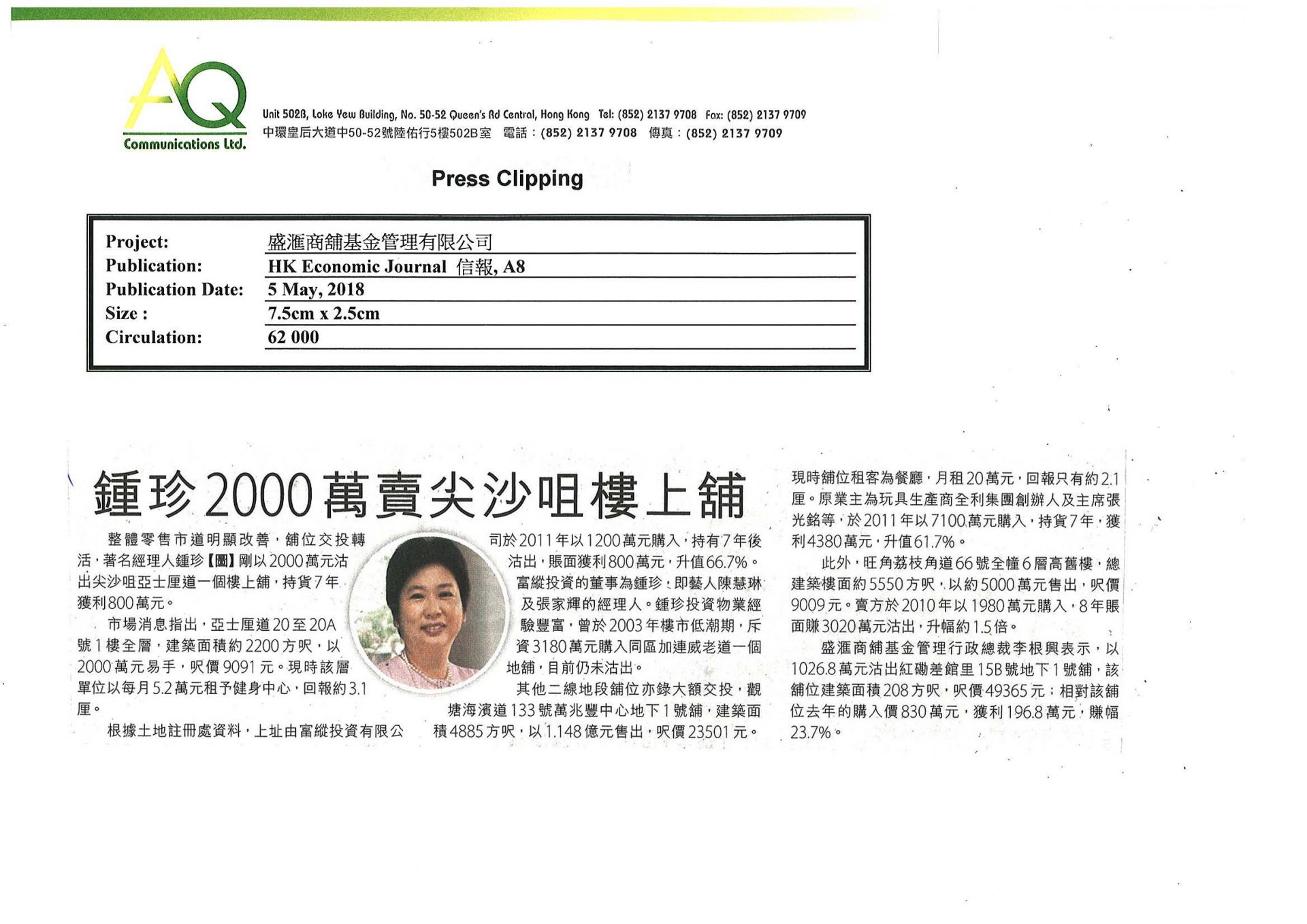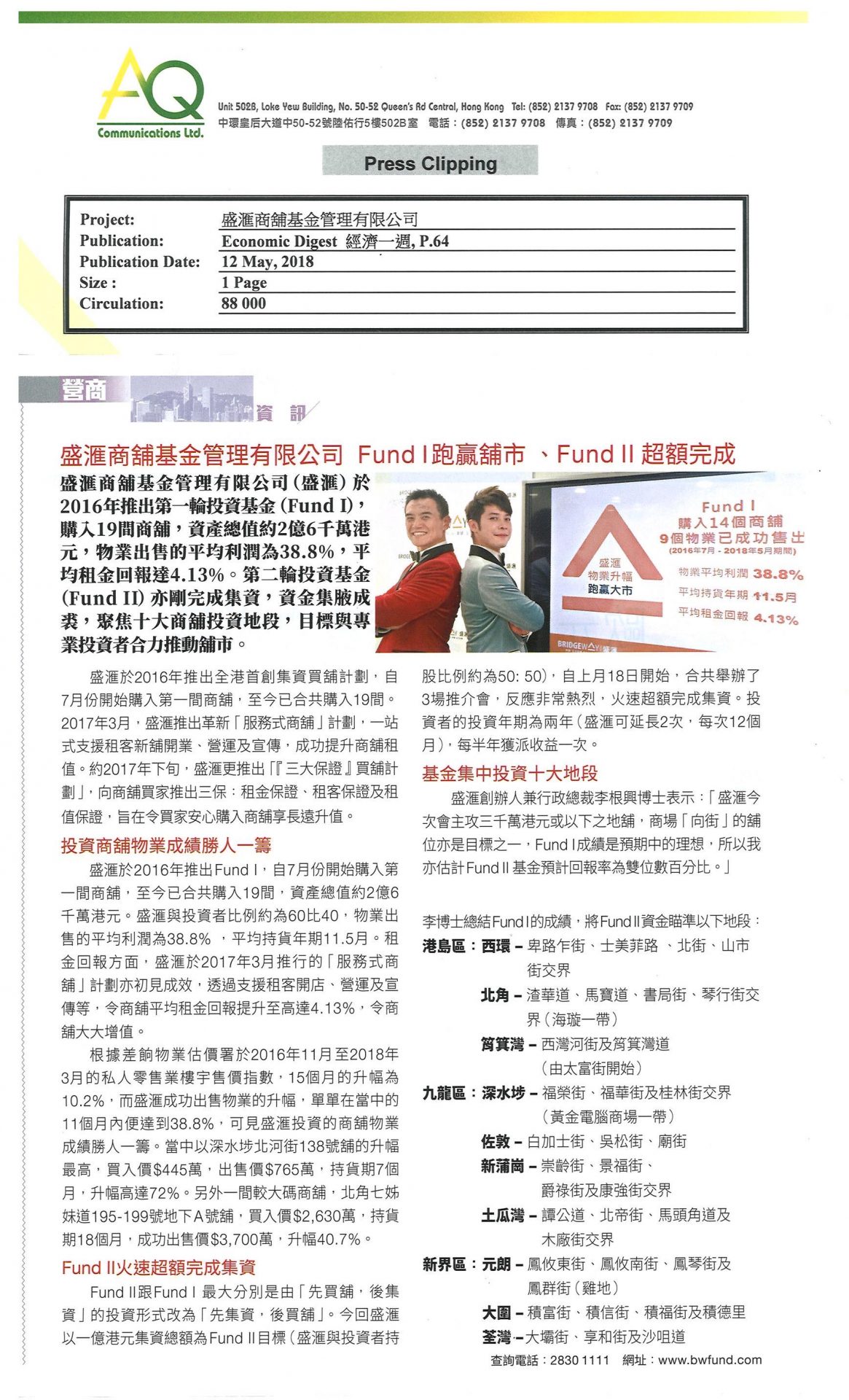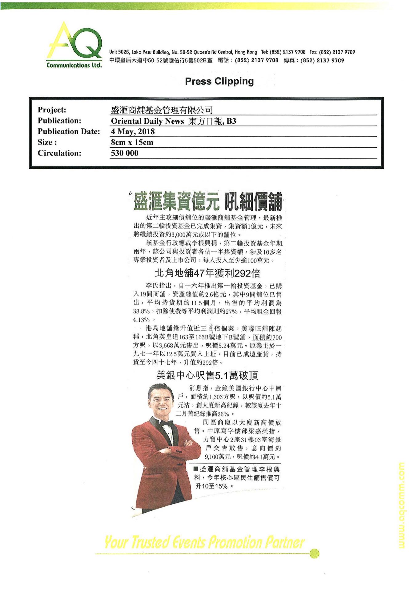 With diverse networks and experiences. AQ is capable of offering substantial services to clients. AQ is committed managing media relations and correlated service, including ongoing media awareness for 6 months.