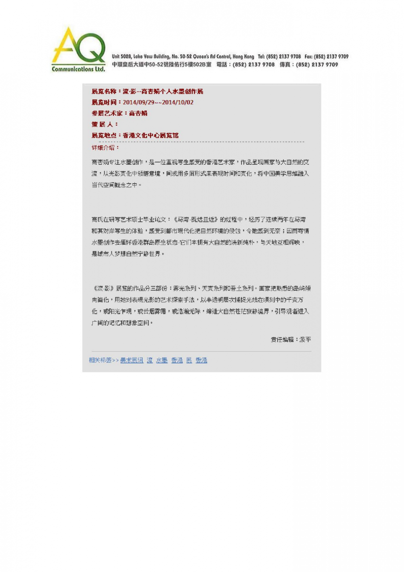 高杏娟個人水墨創作展《流.影》